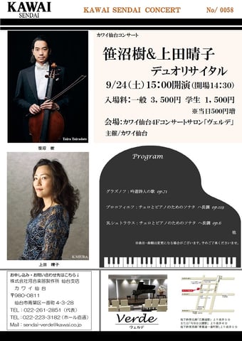 【出演】笹沼 樹(チェロ)、入江一雄(ピアノ)