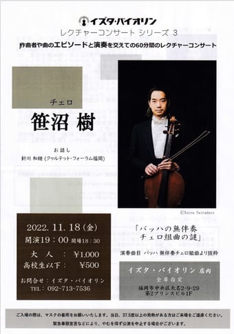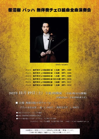 笹沼 樹 バッハ 無伴奏チェロ組曲全曲演奏会