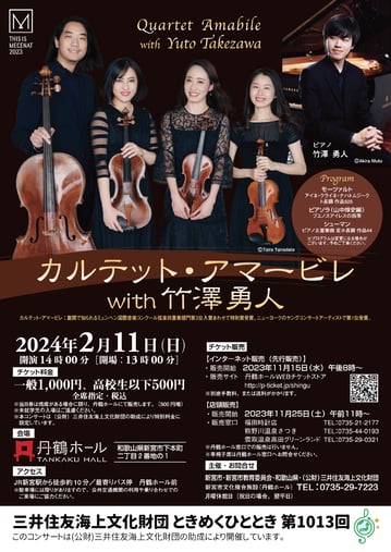 小川恭子、大塚百合菜(Vn) 田原綾子(Va) 笹沼 樹(Vc)實川 風、兼重稔宏(Pf)