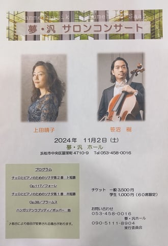 【出演】笹沼 樹(チェロ)上田晴子(ピアノ)